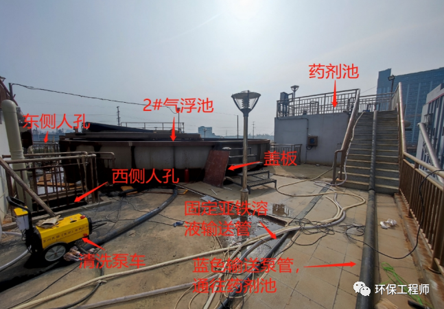 图3 现场图实验室检测显示含大量强酸、氯离子、硫酸根离子、亚 铁离子、铁离子、硫化物,且重金属铬超标,证明污水处理絮凝剂为氯化亚铁,且为强酸性,含硫化物但非硫化氢主要来源。根据实验室分析,该亚铁溶液杂质成分较多,主要杂质为氨基甲磺酸、环八硫等沉淀物,其中氯化亚铁的质量分数不足,且铬的质量分数超 HG-T4538-2013《水处理剂氯化亚铁》标准要求,不符合产品质量标准,结合GB5085.1-2007《危险废物鉴别标准腐蚀性鉴别》相关标准,疑似为危废。实验室检测显示 pH 值为中性,含大量硫化物,证明厌氧池污水含硫化物,可与强酸反应产生硫化氢。根据上海司法鉴定科学研究院检测,4名死者陈*祥、王 *翱、张鹏*、张*鹏血液中硫离子含量分别为0.4μg/mL、3.4 μg/mL、2.9μg/mL、0.27μg/mL, 达到吸入硫化氢致死浓度0.11~31.84μg/ml, 证明死者均因吸入硫化氢中毒死亡。鑫嘉公司、鑫广公司员工在污水预处理设施试运行调试中,发现亚铁药剂储存池往外输送的管道发生堵塞,王*翱决定用清水进行冲洗(口头方案)。但11月18日实际操作中,作业人员张*鹏、陈*祥擅自抽取厌氧池中的污水进行冲洗。厌氧池污水冲入亚铁药剂储存池后,药剂溶液中夹杂的浓盐酸被稀释,氢离子和氯离子的水合过程大量放热,剧烈的放热反应和冲击扰动导致亚铁药剂储存池中的氨基甲磺酸、环八硫分解产生硫化氢,会同池内原有的硫化氢大量集聚,导致进入池内的作业人员中毒。事故调查组通过事故现场勘查、技术鉴定、监控调阅和 人员问询等方式,经专家论证,综合分析认定事故直接原因为:鑫嘉(鑫广)公司试运行期间擅自改变技术方案,使用氯化亚铁(含强酸、氨基甲磺酸、环八硫等杂质)替换硫酸亚铁作为污水处理絮凝剂;药剂池清理作业人员违规使用厌氧池污水冲洗亚铁药剂储存池,引起放热反应产生硫化氢;冲洗作业期间,张*鹏违反有限空间安全作业规程,进入亚铁药剂储存池,导致自身中毒窒息昏倒;陈*祥等5人盲目施救,导致事故后果扩大。1.违法违规建设废水处理工程。未获规划许可、施工许可等手续前提下建造废水处理工程;未落实建设项目“三同时”要求。2.违规发包废水处理工程。对项目承建单位资质条件审核把关不严,违规将废水处理工程发包给鑫嘉公司(该公司未经浙江省住建厅备案);未签订安全生产协议,违规将废水处理工程运行管理发包给鑫广公司。3.安全生产主体责任不落实。企业主要负责人、安管员未认真履行安全生产管理职责;未落实全员安全生产责任制,未督促从业人员、第三方人员严格执行各项安全生产规章制度和安全操作规程;对外包工程管理不到位,以包代管,未有效纳入公司统一协调管理。4.安全隐患排查治理不到位。对厂区内有限空间辨识不全面,未在有限空间区域设置明显安全警示标志,开展有限 空间作业前未审批报备;组织开展隐患排查治理不力,对违反技术方案要求更改污水处理絮凝剂、应急救援装备不足等隐患检查整改不到位;对员工的有限空间安全教育培训缺失。1.违规承接业务。鑫嘉公司持省外三级建筑资质,在省内承接业务时未经浙江省住建厅备案。2. 安全责任不落实。鑫广公司在未与天马公司签订安全生产协议、明确各自安全生产职责的情况下,参与废水处理工程工艺设计、设施安装和运维。3.擅自改变技术方案。鑫广公司违反技术方案要求,使用氯化亚铁替换硫酸亚铁作为污水处理絮凝剂。4.公司内部安全管理缺失。鑫嘉公司、鑫广公司未落实全员安全生产责任制,未及时检查排除有限空间安全隐患, 未有效组织员工安全生产培训,未严格落实有限空间安全操 作规程,未在有限空间区域设置明显安全警示标志,未有效开展员工安全生产应急救援演练。提供第三方安全技术服务不到位,未发现有限空间辨识不全、警示标志缺乏、应急救援设备不足等安全隐患。王*翱。作为废水处理工程安装负责人,对事故发生负有直接责任,涉嫌重大责任事故罪,鉴于其在事故中死亡,免于追究刑事责任。天马公司的实际控制人、安环科长、废水处理工程项目副总3人对事故的发生负有管理责任,涉嫌重大责任事故罪,由司法机关依法处理。鑫嘉公司的法定代表人、废水处理工程运营负责人2人对事故的发生负有管理责任,涉嫌重大责任事故罪,由司法机关依法处理。鑫广公司废水处理工程现场运营主管,对事故的发生负有管理责任,涉嫌重大责任事故罪,由司法机关依法处理。1.天马公司。建议柯桥区应急管理局依法予以行政处罚。2.天马公司法定代表人,建议由柯桥区应急管理局依法予以行政处罚。3.天马公司董事长助理,建议由柯桥区应急管理局依法予以行政处罚。4.鑫嘉公司。建议柯桥区应急管理局依法予以行政处罚。5.鑫广公司法定代表人,建议由柯桥区应急管理局依法予以行政处罚。6.鑫辰公司。建议由绍兴市应急管理局依法依规予以处理。2023年1月10日,柯桥区马鞍街道绍兴富强宏泰印染有限公司发生一起中毒事故,造成3人死亡3人受伤。1月16日,省政府成立事故调查组对该起事故提级调查。根据省政府调查组意见,鉴于两起事故均涉及属地党委政府及相关部门和公职人员,对有关单位和人员的处理建议由省政府调查组调查报告一并提出,其他人员移送绍兴市纪委监委依规依纪依法作出处理。