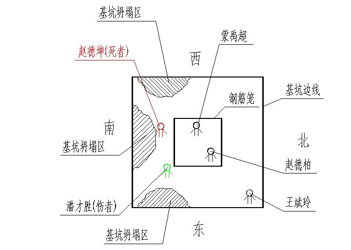 坍塌事故发生地点为新建线路25号杆塔基坑处,事故现场示意图、坍塌后实景图见下图3图4。