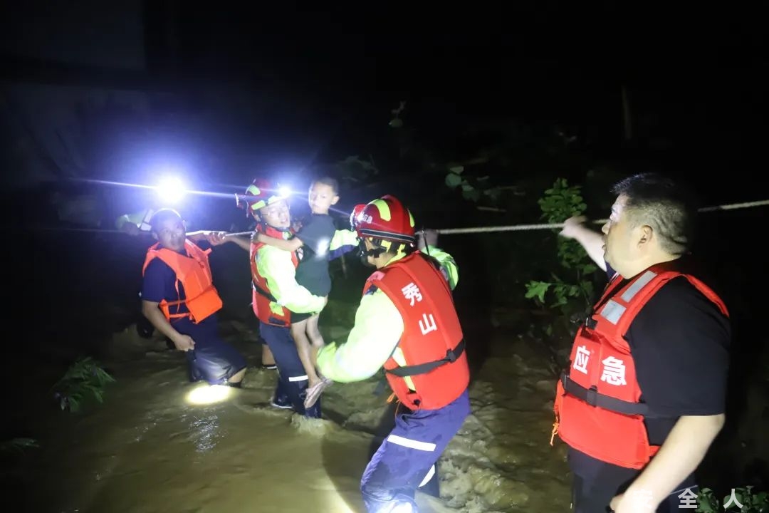 受短时强降雨影响,7月2日凌晨,重庆市秀山县清溪场街道檬子村37户、88名村民被洪水围困,当地应急管理部门接报后,立即调派重庆专业应急救援总队秀山支队20余名应急救援队员赶赴现场救援,经过近两个小时紧张救援,受被困的88名人员全部被转移到安全地带,无人员伤亡。7月1日22时40分,秀山县气象局发布“暴雨红色预警信号”,5个乡镇(街道)雨量将达100毫米以上(大暴雨)。其中,降雨最大降雨量为清溪场街道达126.4毫米。7月2日0时10分,秀山县防汛抗旱指挥部接到报告,清溪场街道檬子村半边街组,由于地势低洼,暴雨导致河流水位猛涨,进村道路被洪水淹没,水、电、通信中断,全村被洪水围困,村内积水达1米深,该村37户、88人被洪水围困急需转移。重庆专业应急救援总队秀山支队的20余名应急救援队员,紧急出动赶赴现场救援,组织群众有序转移。记者了解到,檬子村依河而建,半边街组在该村地势最低洼处,坎上是一条公路,旁边有一条小溪沟,洪水顺着公路而下,与水势猛涨的小溪沟汇流,房屋四周一片汪洋。重庆专业应急救援总队秀山支队赶到现场时,一些居民已被洪水淹没近1米。当时天空暴雨如注,洪水不断上涨,救援已刻不容缓,“我们最担心的就是被困人员的房屋被洪水冲倒,将严重威胁到被困人员的生命财产安全。”秀山县应急管理局副局长邓劲松负责带队指挥,眼见情况危急,他下令实施救援。“被洪水阻隔,我们与被困人员相距50余米,这给救援行动带来了极大困难。”秀山支队支队长肖开发组织救援人员穿好救生衣、携带救生绳等救援装备对现场进行勘查,并根据现场情况,利用救生抛投器将绳索抛送给被困人员,被困人员将一端绳索固定在房屋的栏杆上,另一端则由救援人员拉着,由此成功打开一条救援的生命通道。秀山支队的应急救援人员立即顺着救生绳蹚水进入被困区域,对被困人员进行逐一转移。在转移过程中,由于水流湍急,救援人员在一条小溪桥上组成了一道“生命人墙”,通过接力方式,逐一将被困居民不断转移至安全地带。